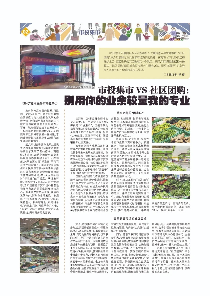 在2020年第48期專題中,我們通過鄭州市市場發(fā)展中心的推薦,采訪了鄭州農(nóng)貿(mào)市場里的標(biāo)桿企業(yè),很多讀者對(duì)市投集市產(chǎn)生了濃厚的興趣,什么是國有農(nóng)貿(mào)市場?菜市場的公益性指的是啥?市投集市踐行標(biāo)準(zhǔn)化有什么突出特點(diǎn)?