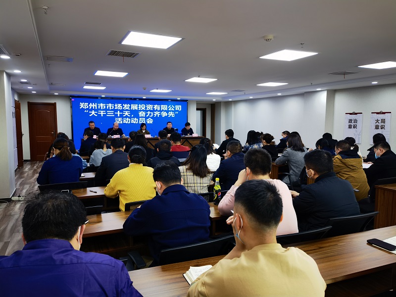 12月6日下午,鄭州市市場發(fā)展投資有限公司召開“大干三十天,奮力齊爭先”活動動員會。公司常務(wù)副總經(jīng)理趙潔,黨委委員、工會主席龐曉冰,黨委委員、總經(jīng)理助理孫濤,黨委委員、綜合管理中心總監(jiān)楊哲,黨委委員、財(cái)務(wù)管理中心總監(jiān)逯衛(wèi)川出席。